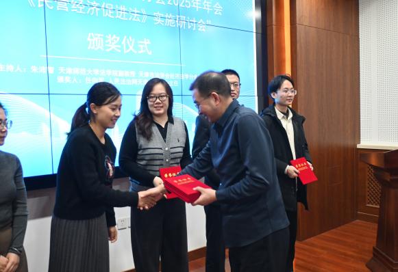 第三单元由天津市法学会经济法学分会秘书长、qm球盟会副教授朱沛智主持,人民法治网天津运营中心任向军主任为年会论文一等奖作者颁奖,天津市法学会经济法学分会副会长、河北工业大学教授马立民为会议作总结发言,马立民教授再次感谢各位与会专家学者的到来,指出目前民营经济发展的前景广阔,本次学术研讨会既注重对《中华人民共和国民营经济促进法》基础理论的研究,又对标民营经济发展的实际问题,会议取得了预期的效果!